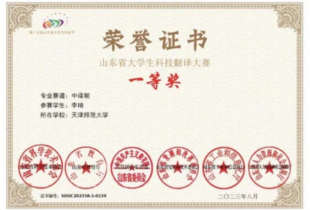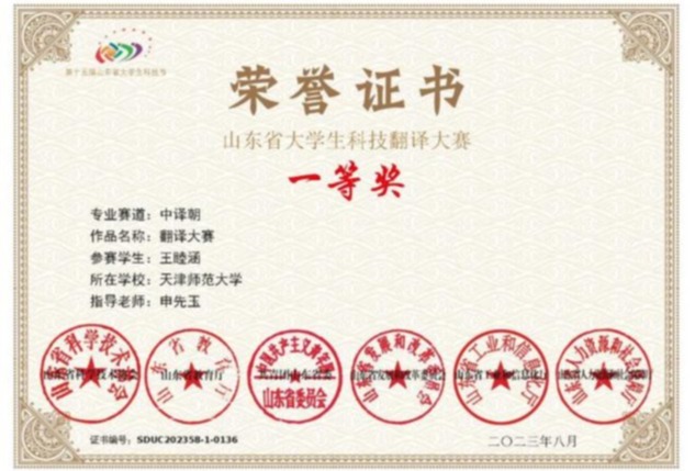 近日,2023年第十五届老员工科技节——“RWS杯”山东省老员工科技翻译大赛圆满落幕。伟德体育官方网站朝鲜语专业员工不负众望,凭借扎实的语言功底和出众的翻译技巧,在本届翻译大赛各组比赛中累计获得奖项4项,2022级朝鲜语翻译专业硕士生李琦获得“中译朝”赛道一等奖、“朝译中”赛道三等奖,2021级朝鲜语专业本科生王睦涵获得“中译朝”赛道一等奖,2021级朝鲜语专业本科生高祜怡获得“英译中”赛道三等奖,展现了外院学子的卓越风采。