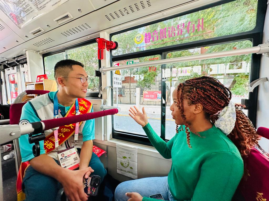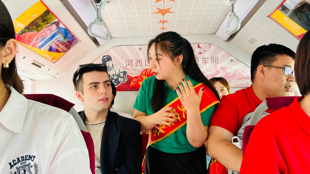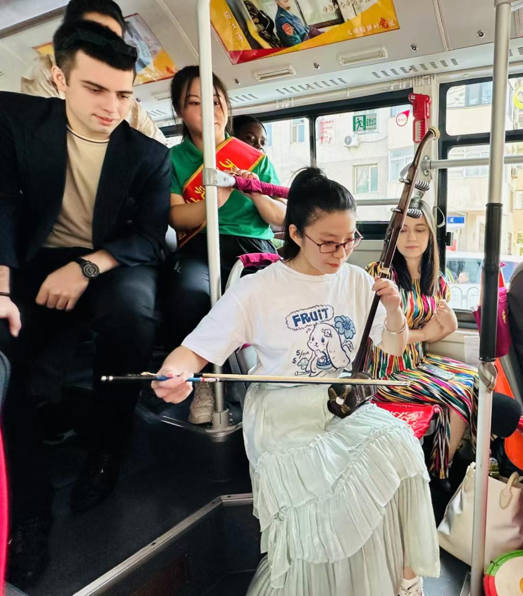 活动伊始,“天津味道,世界共鸣”,中外师生共同演绎天津小曲《说学逗唱》,既保留原汁原味,又融入现代元素,现场气氛热烈而欢快,车厢一下子热闹起来。