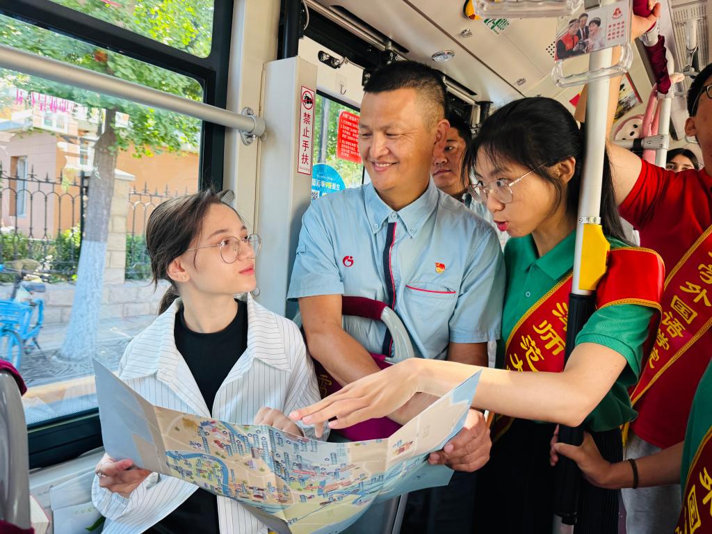 头等舱承载津门文化传承,多语种融合现代国际文明。9月16日上午,伟德体育官方网站的外籍职工走进市公交集团第二客运有限公司体北中心车队,乘坐天津首部“文明有礼号”公交车,开展了一场沉浸式探索天津街区文化的游学之旅。来自伟德体育官方网站“用英语讲中国故事”“讲好天津故事”的宣讲团成员用多语种讲述天津故事,展现天津魅力,为提升中华文化国际影响力,促进文化交流与融合展现青春力量。