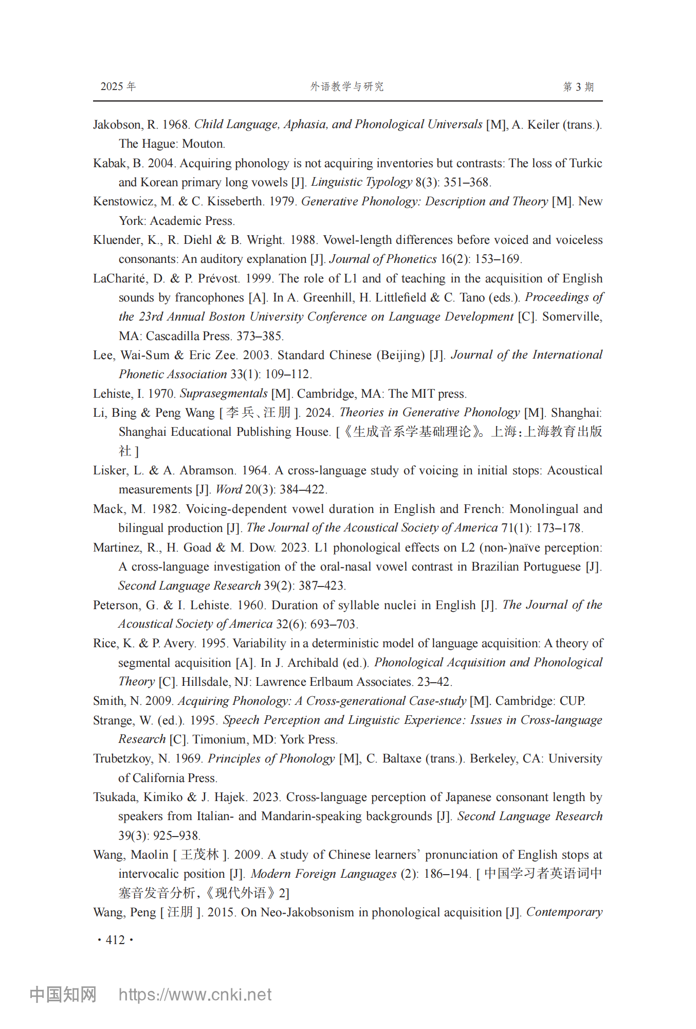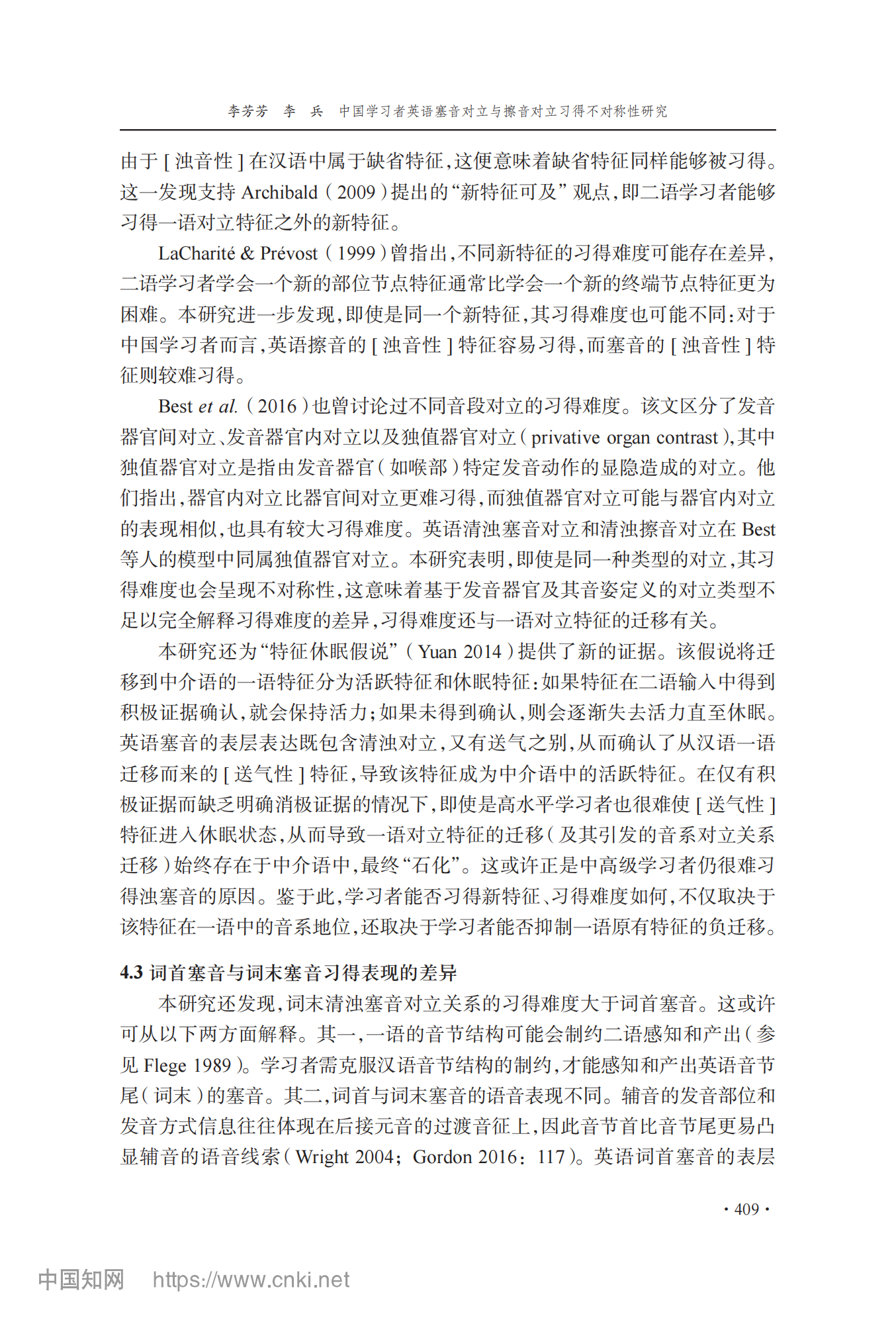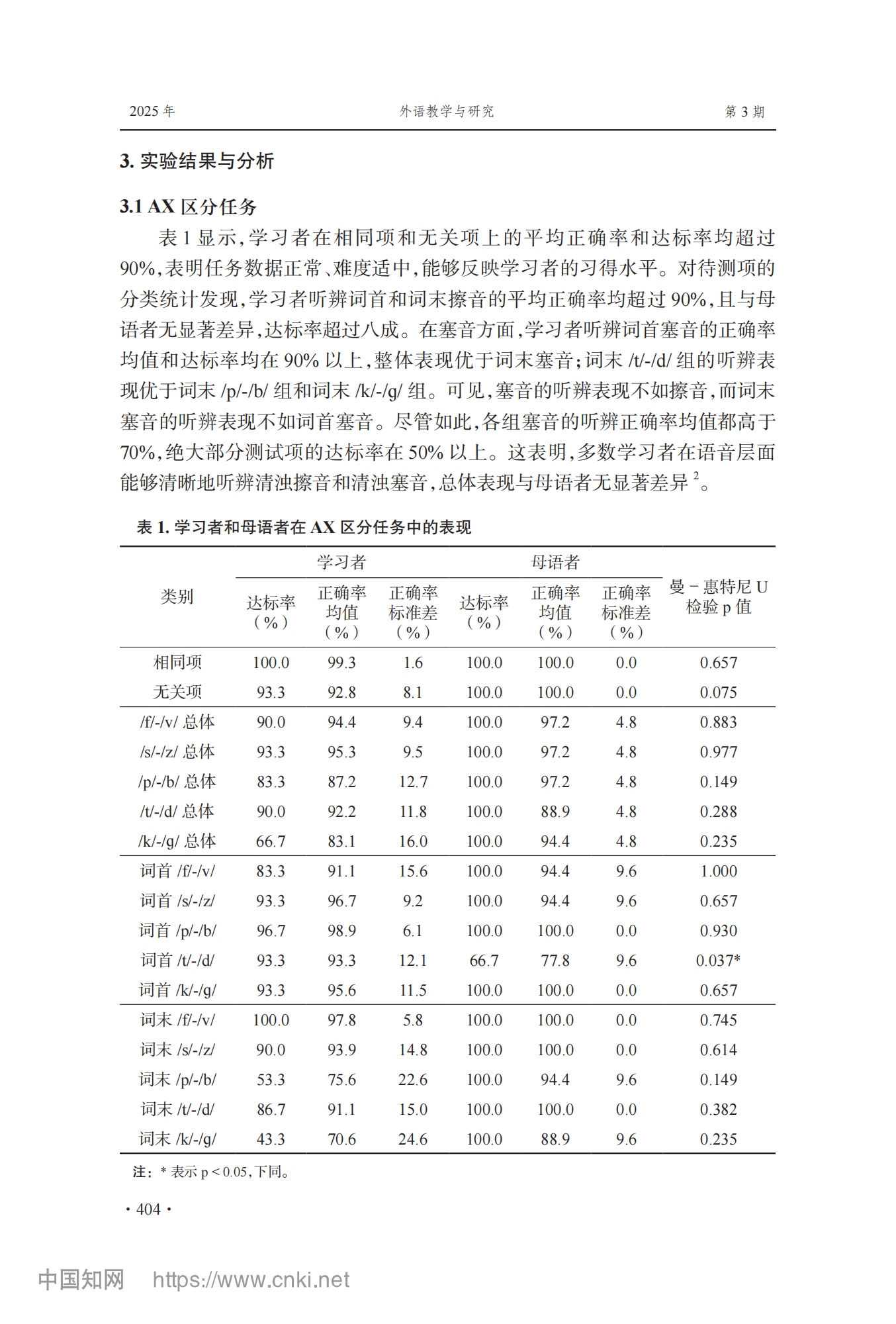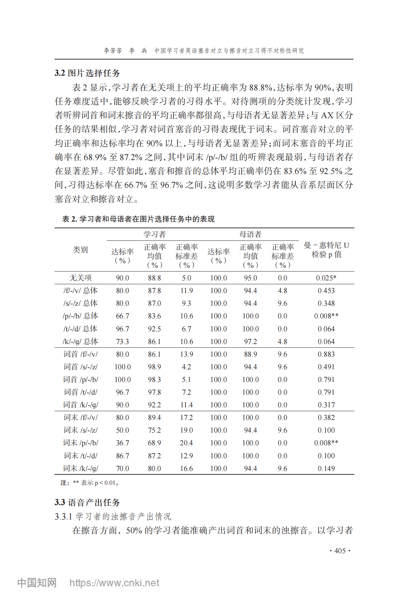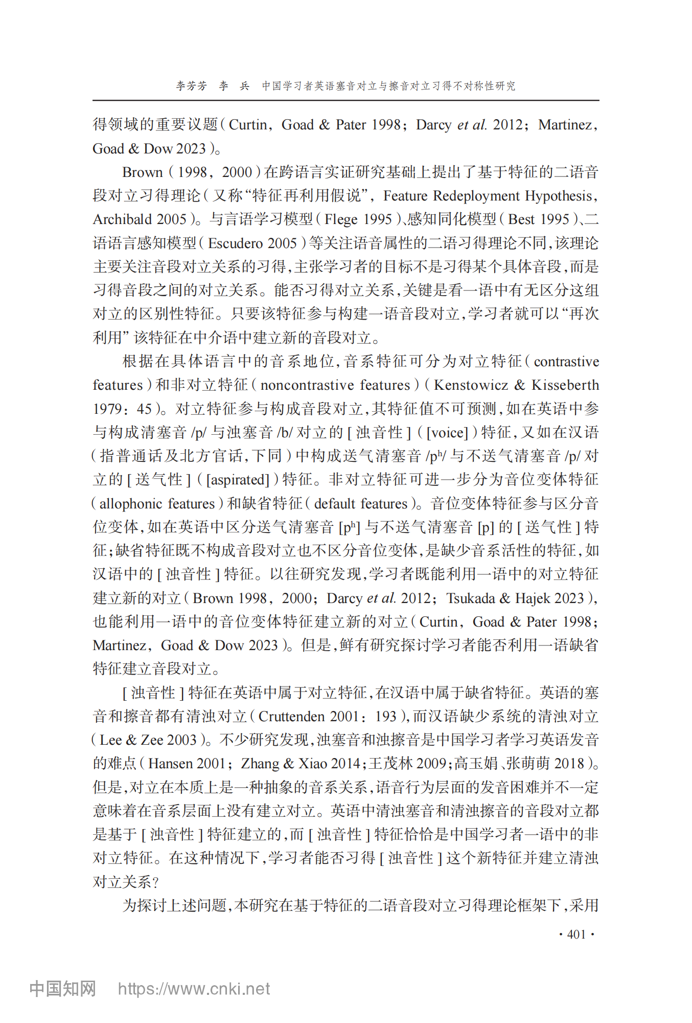 参考引用格式:李芳芳,李兵.中国学习者英语塞音对立与擦音对立习得不对称性研究[J].外语教学与研究,2025,57(03):400-413.DOI:10.19923/j.cnki.fltr.2025.03.010.