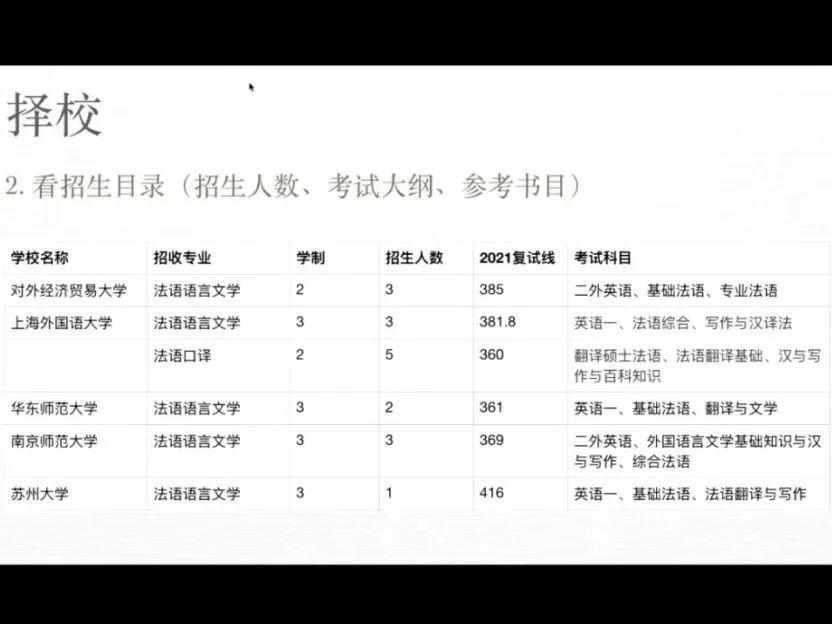 紧接着,顺利考上对外经济贸易大学法语语言文学专业的王擎天同学向同学们介绍了他的考研经历,他首先向同学们介绍了自己择校的经验,接着向同学们介绍了自己的各科备考经验,为同学们细致地介绍了准备法语各项科目的备考方法。