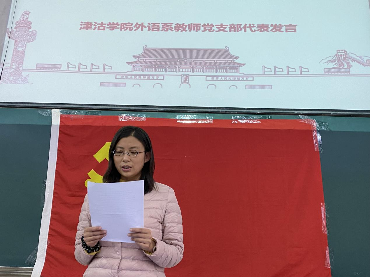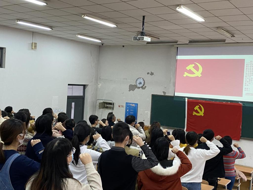 津沽公司外语系教师党支部代表闻超和伟德体育官方网站英语系高英教研室党支部代表杨天旻两位老师,结合自己的入党历程畅谈“政治生日”感言,并寄语新发展党员牢记党员身份,用实际行动践行入党誓词。新发展党员代表1912朝鲜语闫赫谈到,组织入党一生一次,思想入党一生一世,成为预备党员以来,更加深刻地意识到国家的命运、党的命运与每一位青年党员息息相关,在未来我将始终跟党走,在新起点上接续奋斗,走好新的长征路。