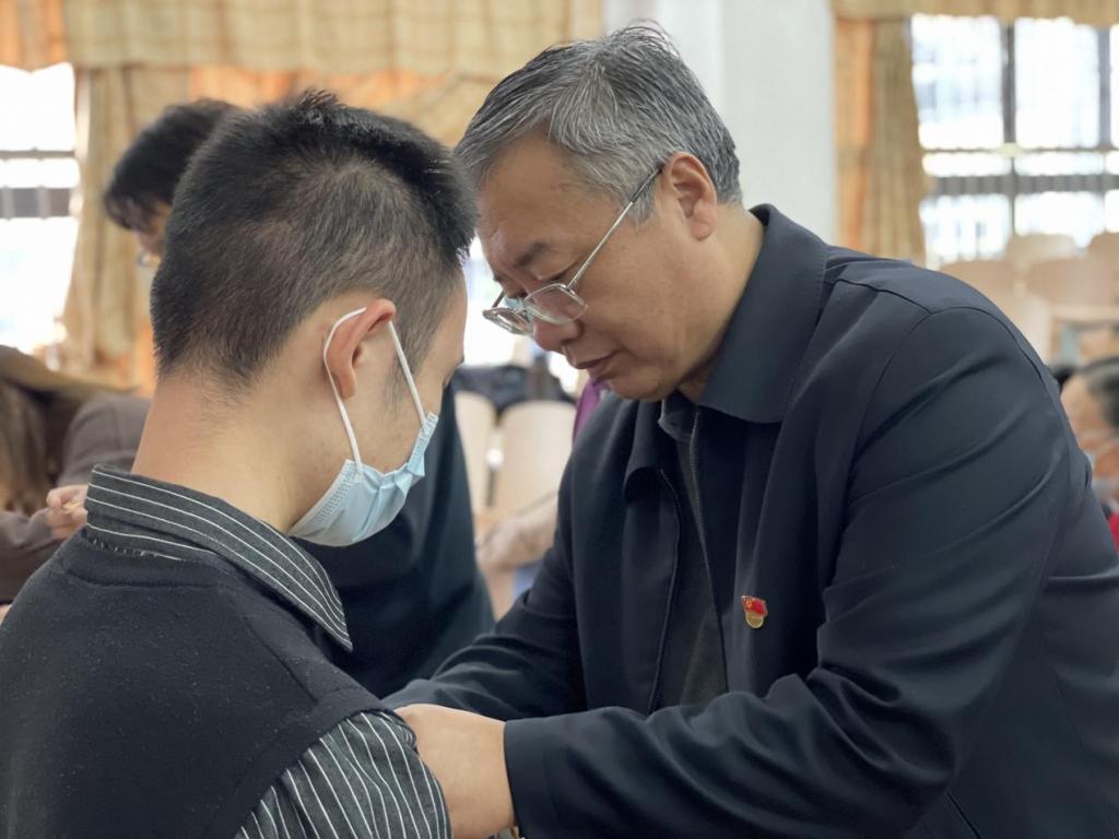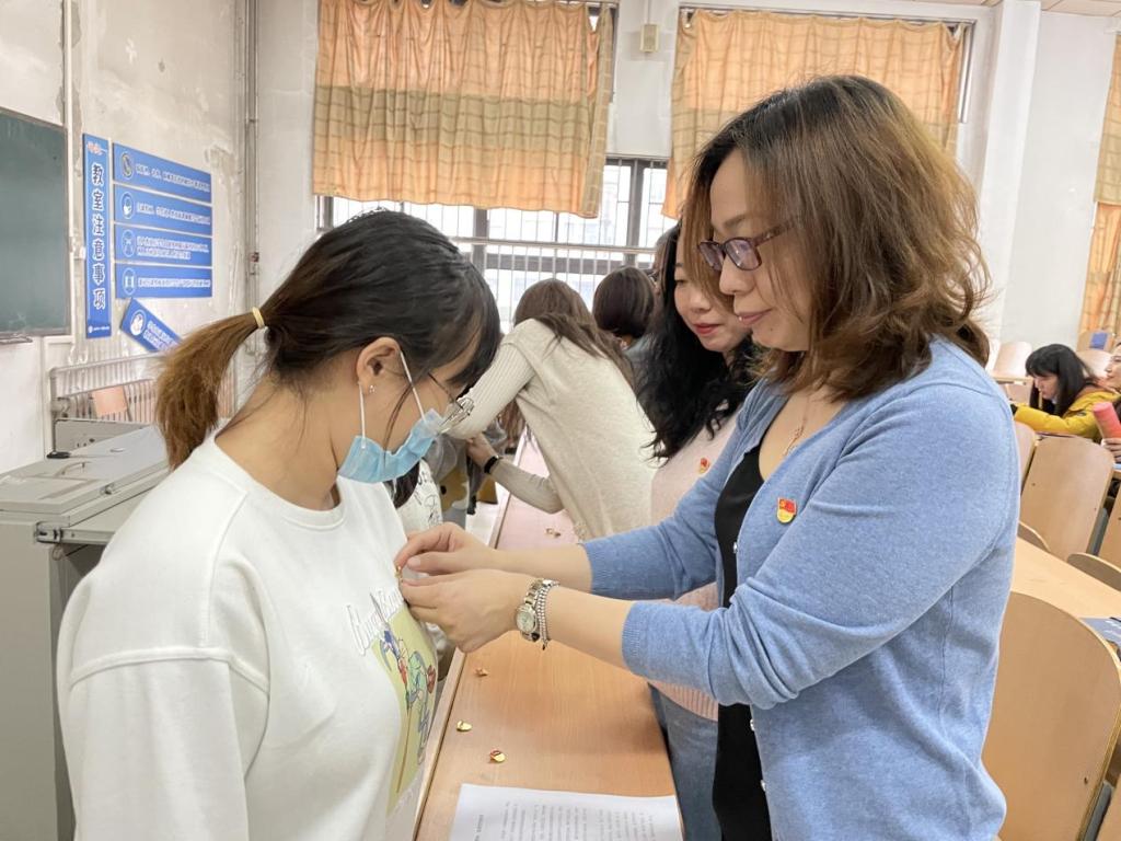 会上,党委副书记刘晓蕾同志带领新发展党员进行宣誓,其他党员同志重温入党誓词。铿锵的誓词,发出为共产主义奋斗终身的铮铮誓言,铭刻在每一个人的心头。参会教师同志为新发展党员佩戴党员徽章,这种以老带新、薪火相传的“老党员”为“新党员”佩戴党员徽章仪式,是一种鞭策,也是一种激励;是一种精神的传承,也是一种奋斗的延续。
