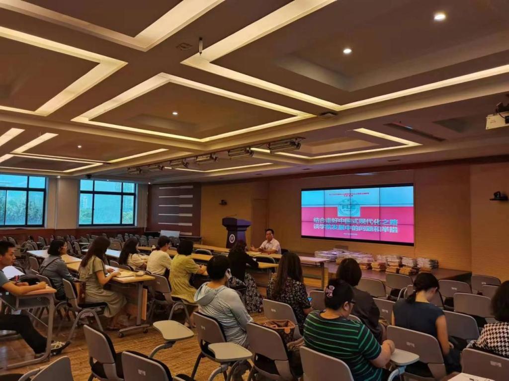 副经理李艳玲以“植根于中国优秀传统文化,走好中国式现代化之路”为题,为行政教辅党支部、本科生日语党支部、本科生朝鲜语党支部党员开展专题党课。李艳玲全面阐述了中国式现代化的定义和内涵,要求师生党员要从价值内涵和道义高度,理解作为人类文明新形态的中国式现代化;同时秉持科学理性的态度,倡导世界多元文明相互尊重、相互借鉴,切实将党的二十大精神融入思想、化为行动、落到实处。