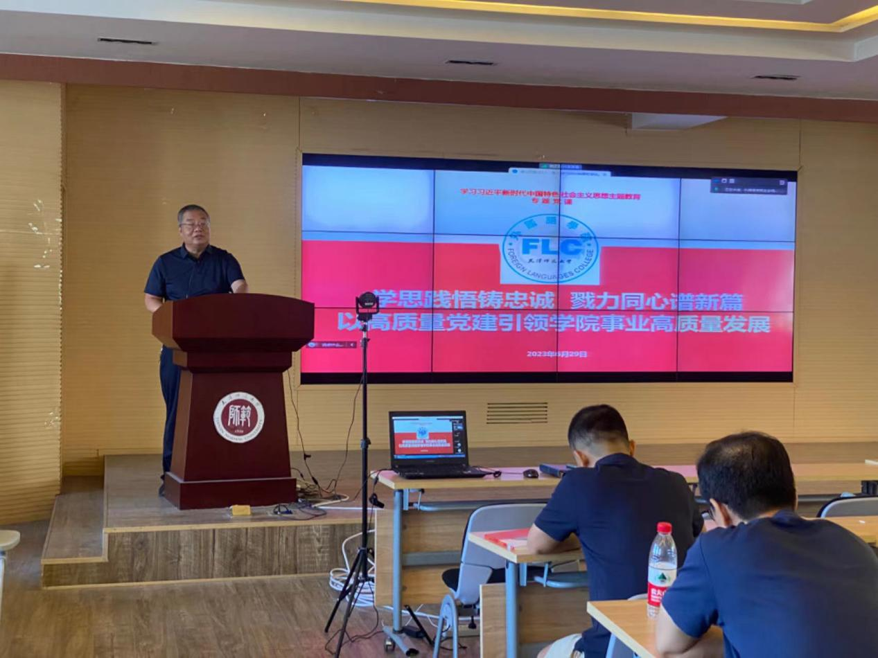 公司党委书记张维和以“学思践悟铸忠诚  勠力同心谱新篇  以高质量党建引领公司事业高质量发展”为题,为小语教师党支部、学术硕士党支部、本科生俄法党支部党员开展讲座。张维和围绕深入学习贯彻习近平新时代中国特色社会主义思想根本任务,准确把握“学思想、强党性、重实践、建新功”总体要求,提出助推公司发展的各项举措,切实推动党建工作各项任务落到实处、见得实效,为公司各项事业发展持续提供政治保障。