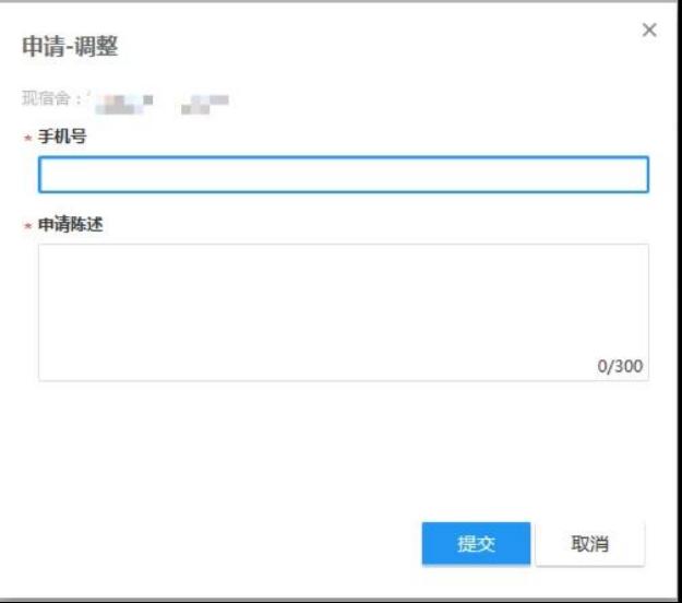 点击宿舍申办应用,进行入住、退宿、调宿等申请页面,选择相应业务,点击申请,填写相关信息,点击提交完成申请。