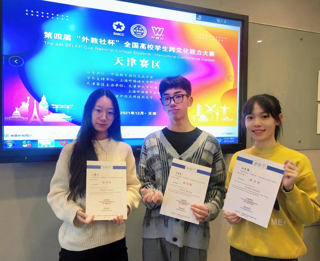 12月4日,第四届“外教社杯”天津市高校员工跨文化能力大赛天津赛区决赛在线上顺利举行。公司历史文化公司19级世界史双语专业刘思萌、政治与行政公司20级行政管理专业甘晨希,以及公司20级日语专业刘馨怡三位同学组成的参赛队伍,荣获天津市特等奖,晋级全国决赛。