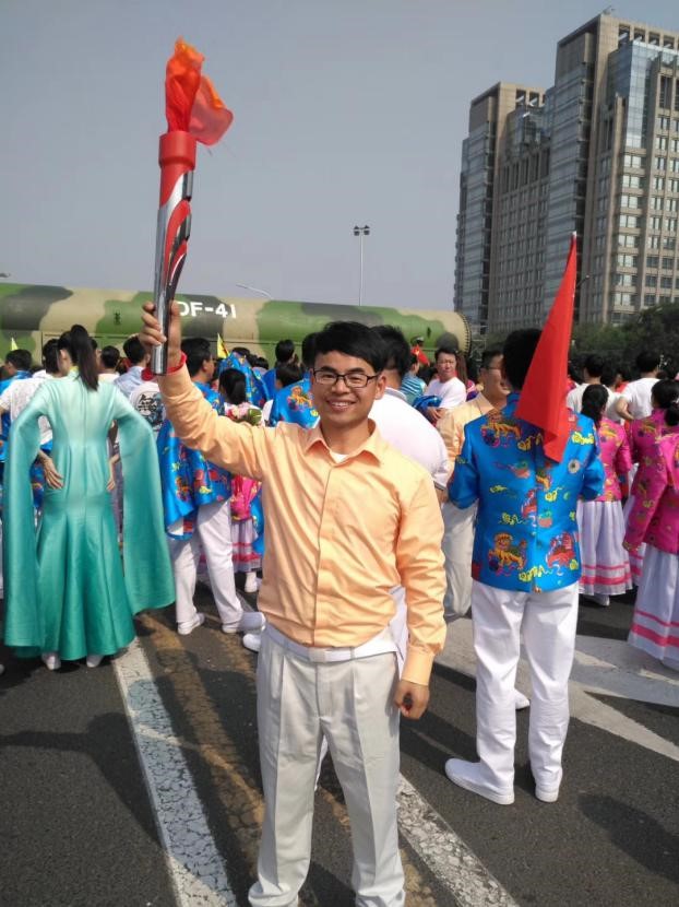 *正在北大深造读博的左金彪老师,作为北大方阵的员工代表,参加了国庆群众游行,带去了全院师生对祖国的祝福*